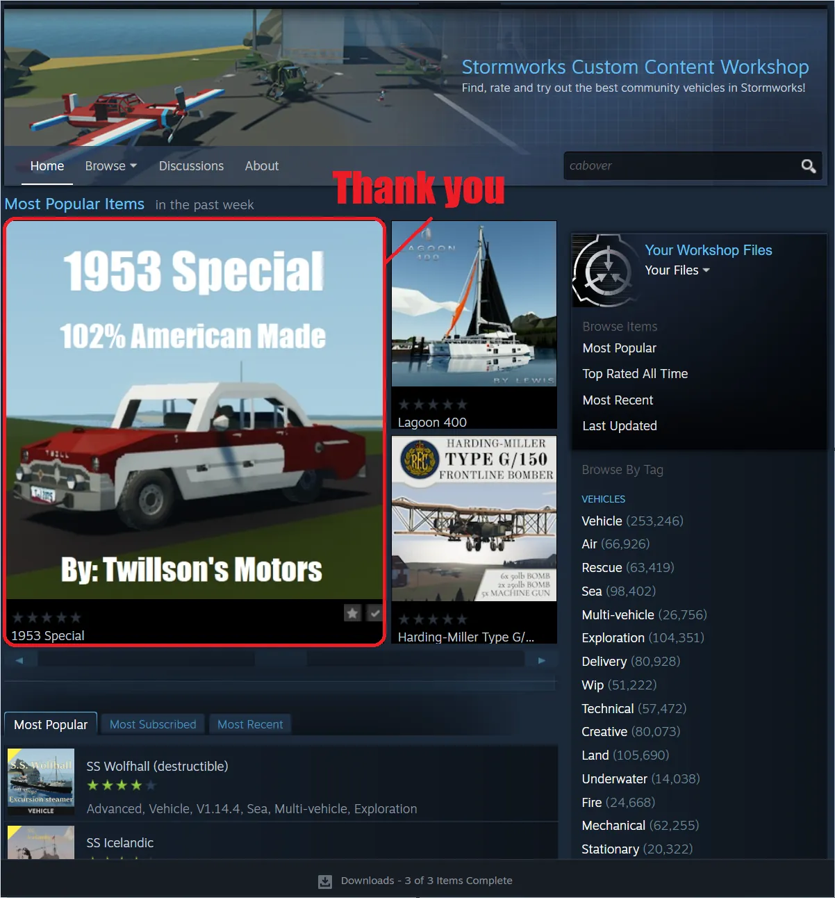 After the days of World War II, Twillson's Motors was struggling to stay alive. They were neck to neck with the leading car companies, just trying to reach the average Stormworker. Twillson's Motors was trying everything to bring business back, but the people of Stormworks thought the cars were too cringeworthy and outdated. Untell they were just about bankrupt, the engineers and designers decided "screw it' and spent their last $10,000 ($121,000 in today's cash) to make the "Special". And it was a HIT, people ran to buy this great car and saved the company from bankruptcy.