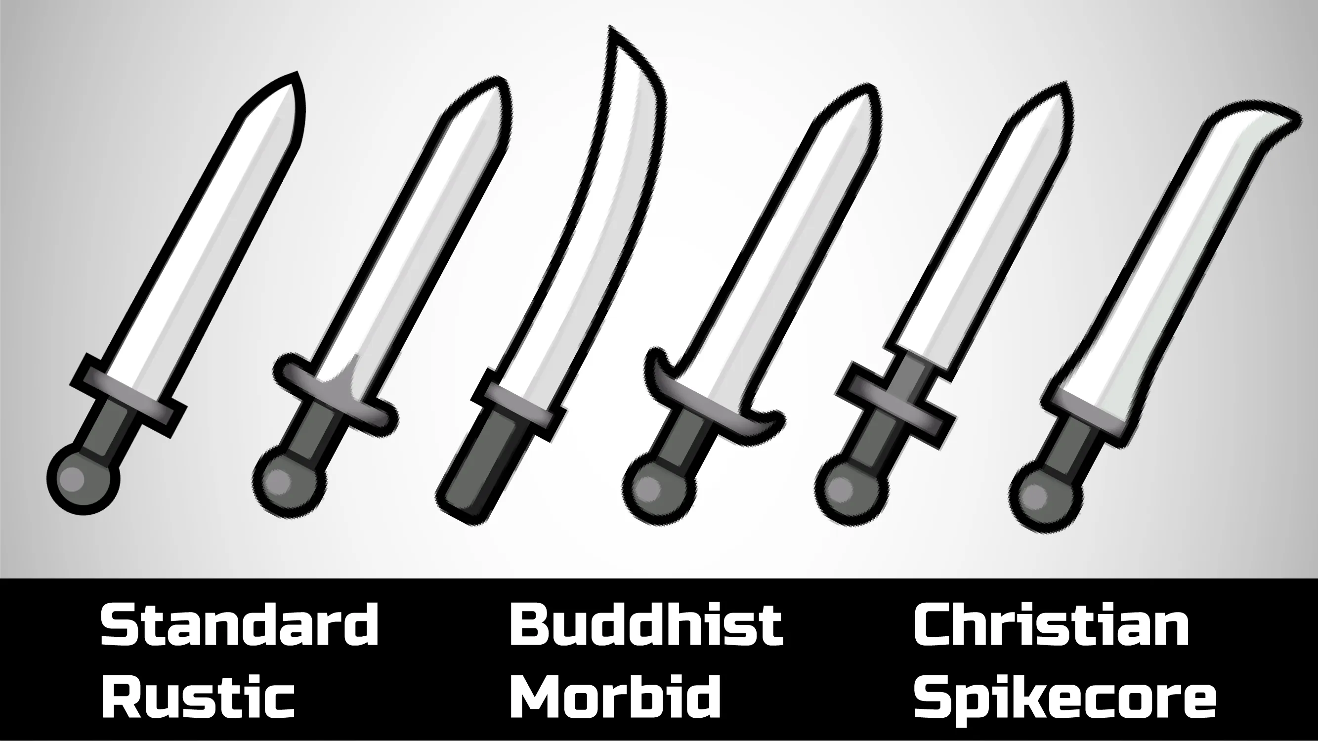[b]Melee Weapons[/b]: The textures for melee tries not to be too anachronistic, only if it is so deeply ingrained with a culture that it'd make sense it had been passed down thousands of years. Melee restyles should be subtle and generic, enough to give the feeling of the style without becoming too visually loud.