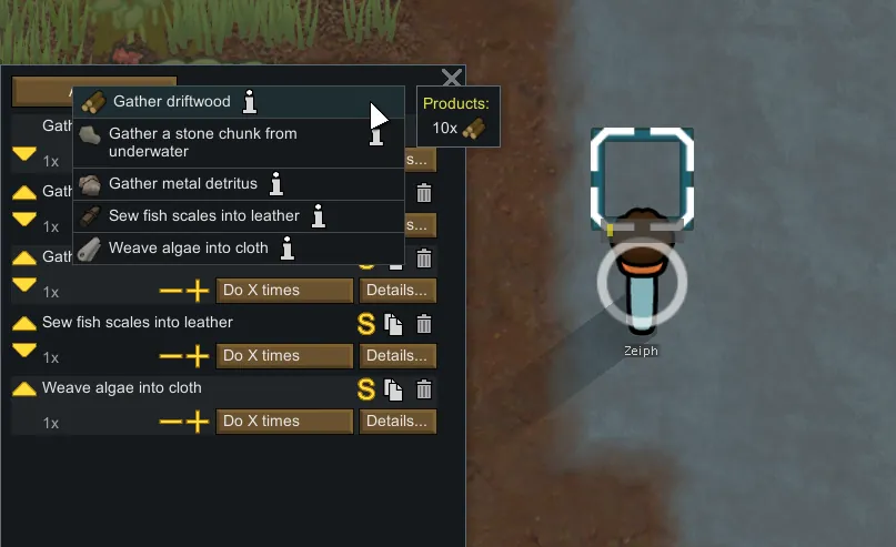 - [b]Gather driftwood[/b]: Creates 15 wood.
