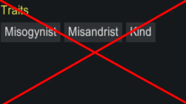 I don't even know how to search for something like this. But the mod makes the misogynist and misandrist traits mutually exclusive, as well as makes them disagree with gender supremacy memes of the gender they dislike, if you have ideology. I also don't think sexism is very kind, so both of them are incompatiable with kind.