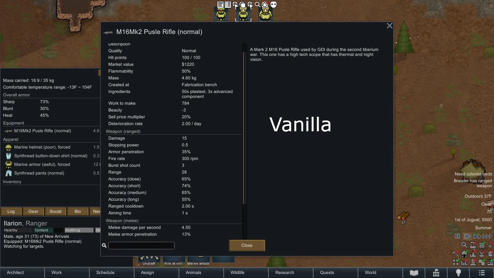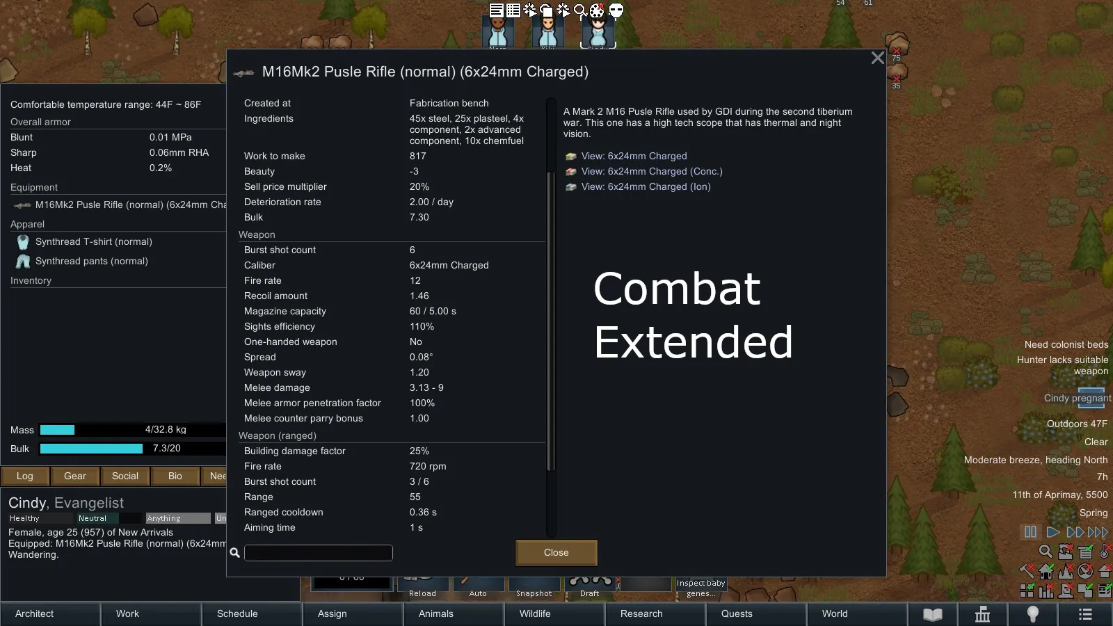 Adds GDI M16Mk2 Pusle Rifle the pulse rifle added works like a upgraded charge rifle, weapon states is up in the screenshots and yes the weapon works in Combat Extended Credits ------ WestWood/EA --- Command & Conquer Fox_9 --- modder