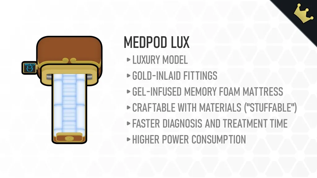 [*] MedPod Lux - Royalty DLC-only variant with faster operation but higher power consumption; stuffable