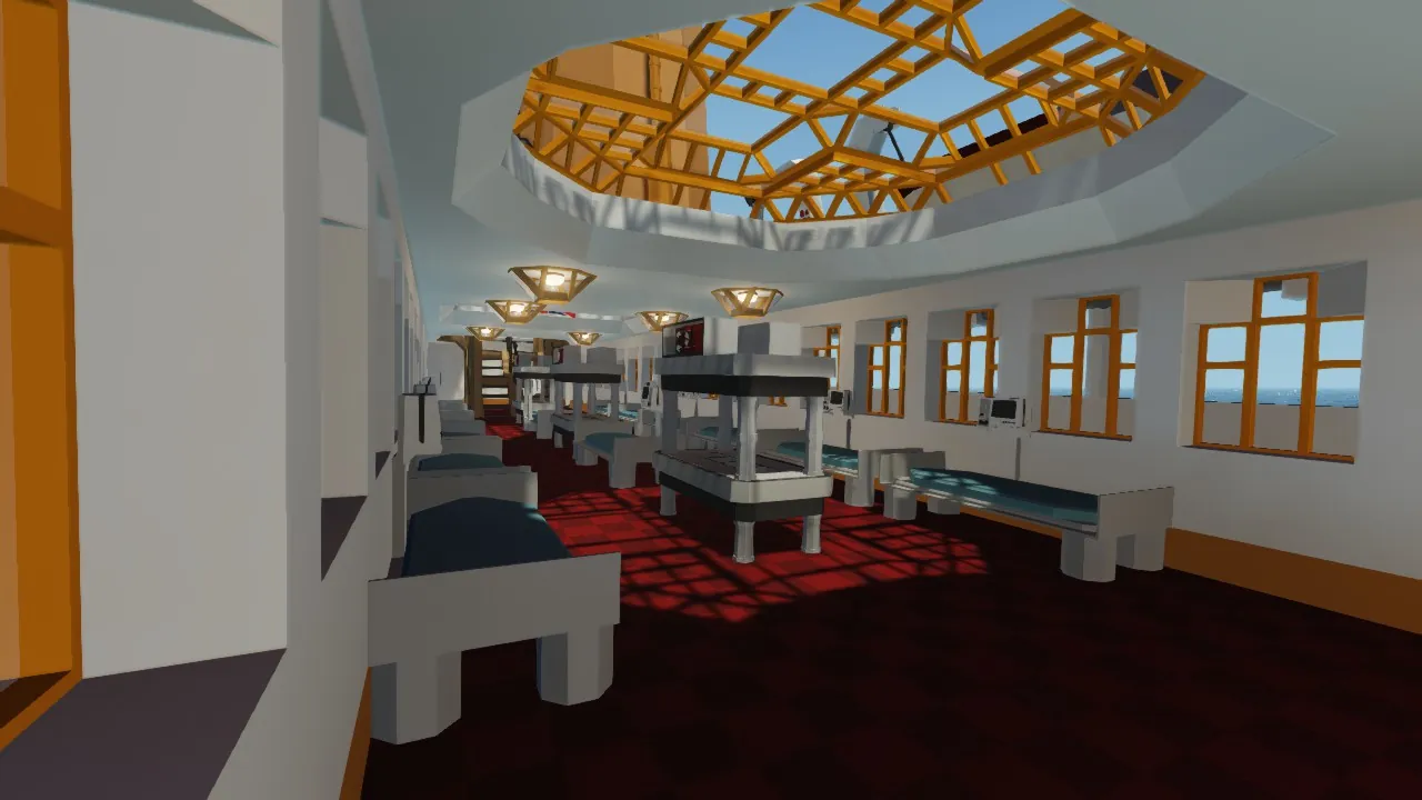 Enter boiler room at the rear of the first class cabins