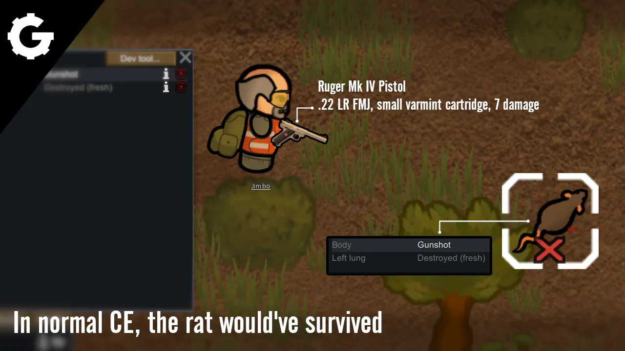 Long ago, Combat Extended had patches that adjusted the health and body size of each animal to more realistic values, as well as increased the chance of hitting an animal's internal organs. These patches were then removed in late 2022 with the release of CE version 5.0, causing most animals to be unreasonably tanky and awkward to hunt in my opinion.