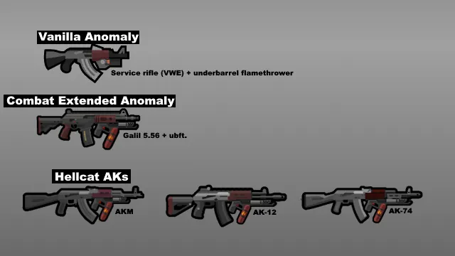 Adds rifles with underbarrel flamethrowers: