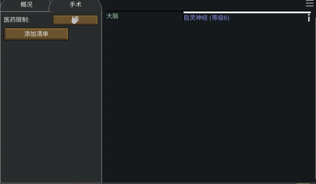 本模组在手术页面添加了药物方案设置,可以在一个页面内设置手术所需的药物方案,方便管理。 This mod adds a drug plan setting to the surgery page, which allows you to set the drug plan required for surgery on one page, making it easier to manage.