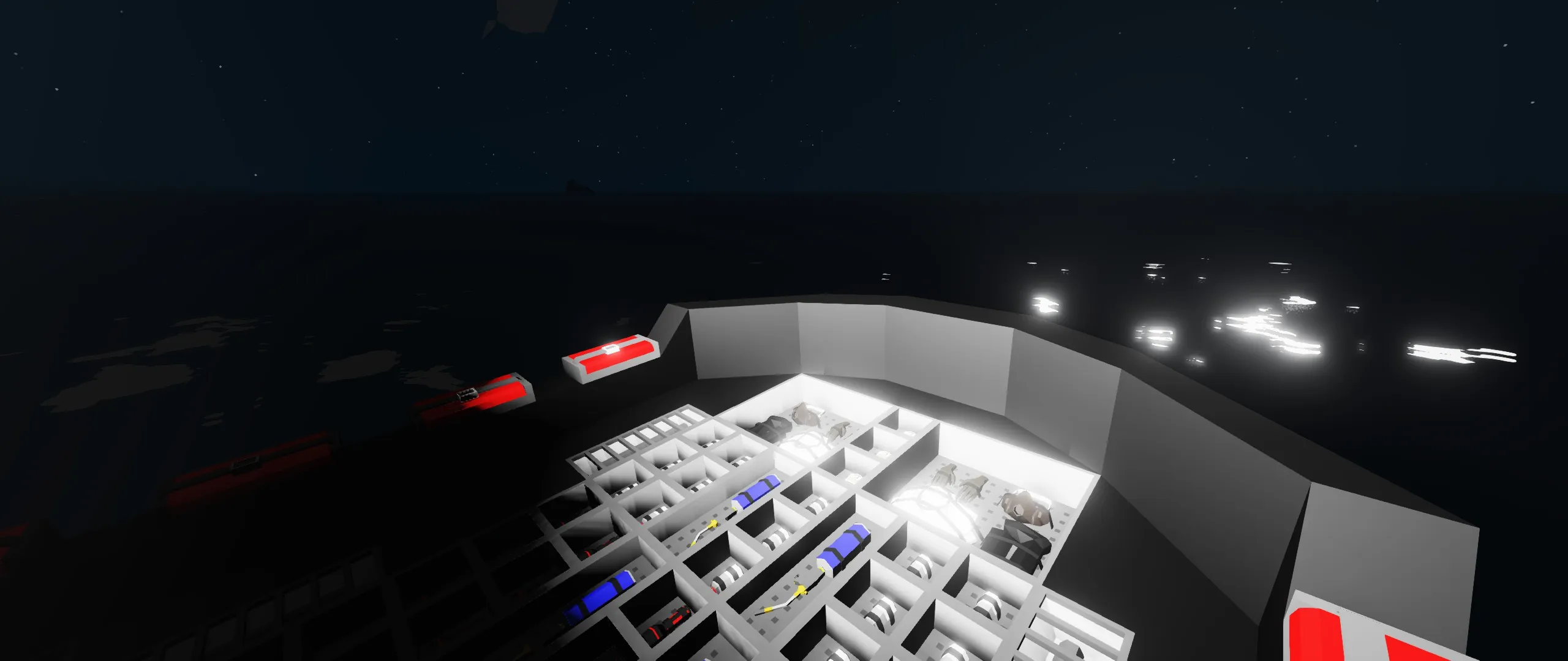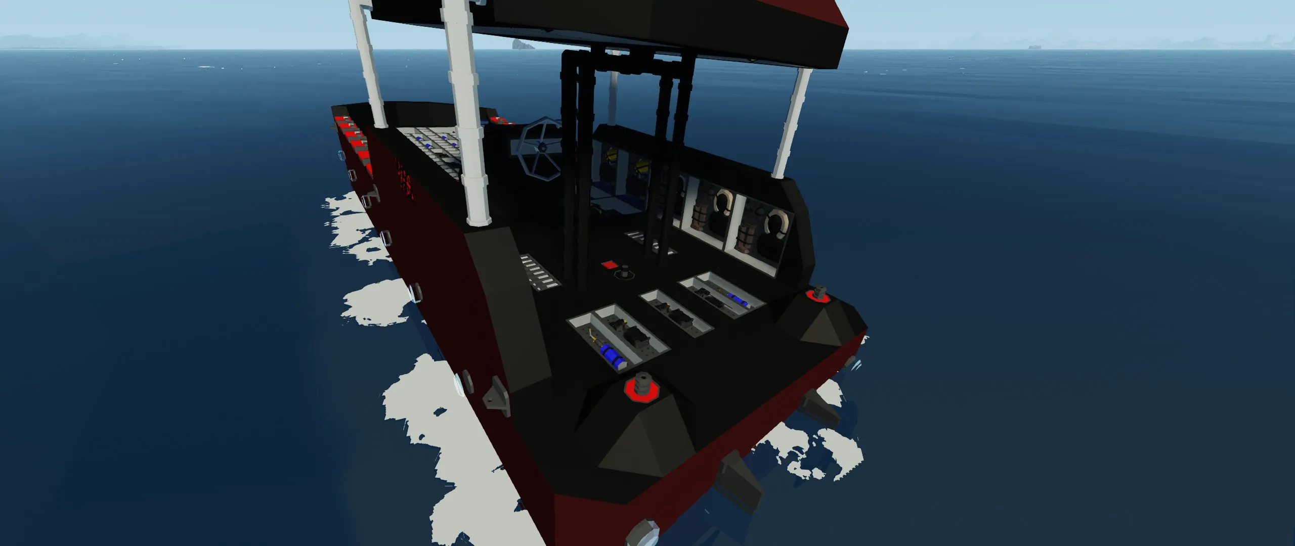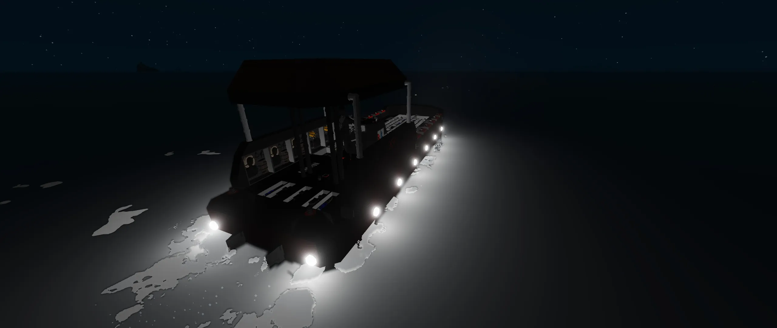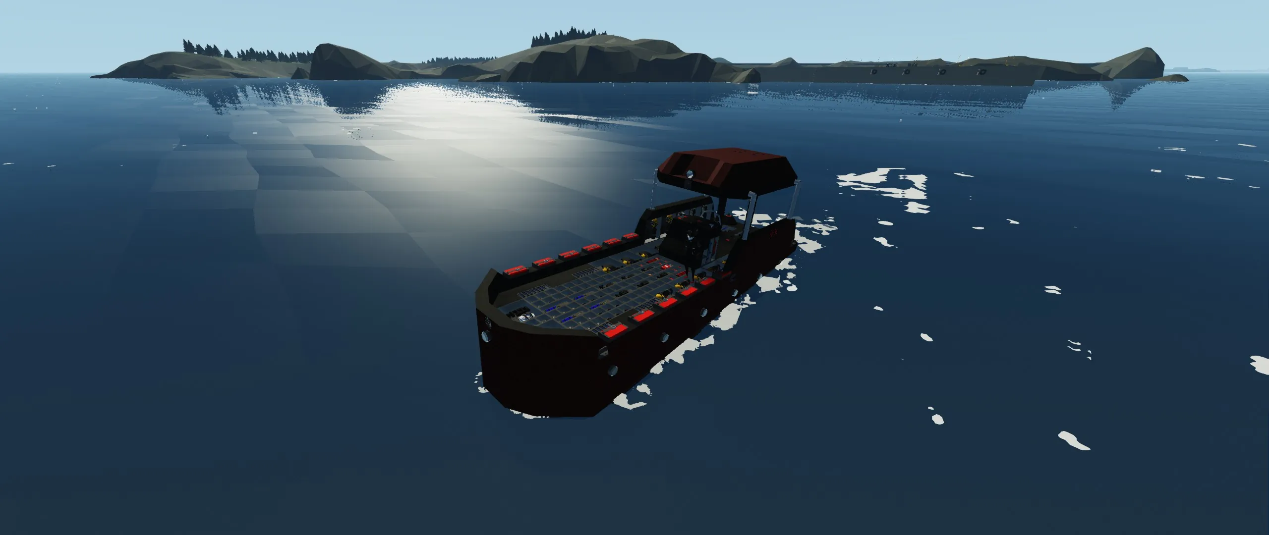 this is a small exploration boat that is equipped to explore any watery environment and has equipment to fix any issue that happens with the boat it holds 12 passengers 1 driver it has a few hundred liters of fuel and i will warn you to try not to use this boat under harsh conditions bc of its small size it cant handle huge waves