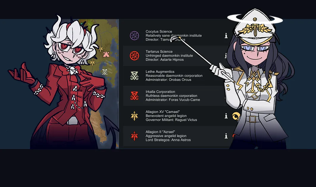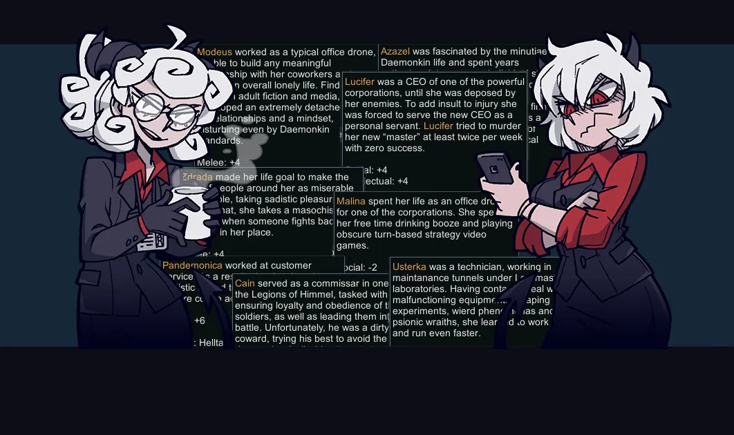 I've tried to take the certain vibes that Heaven and Hell in "Helltaker" embodies, and tried to made them into a factions that would fit the lore and overall universe of Rimworld. And the results are these: