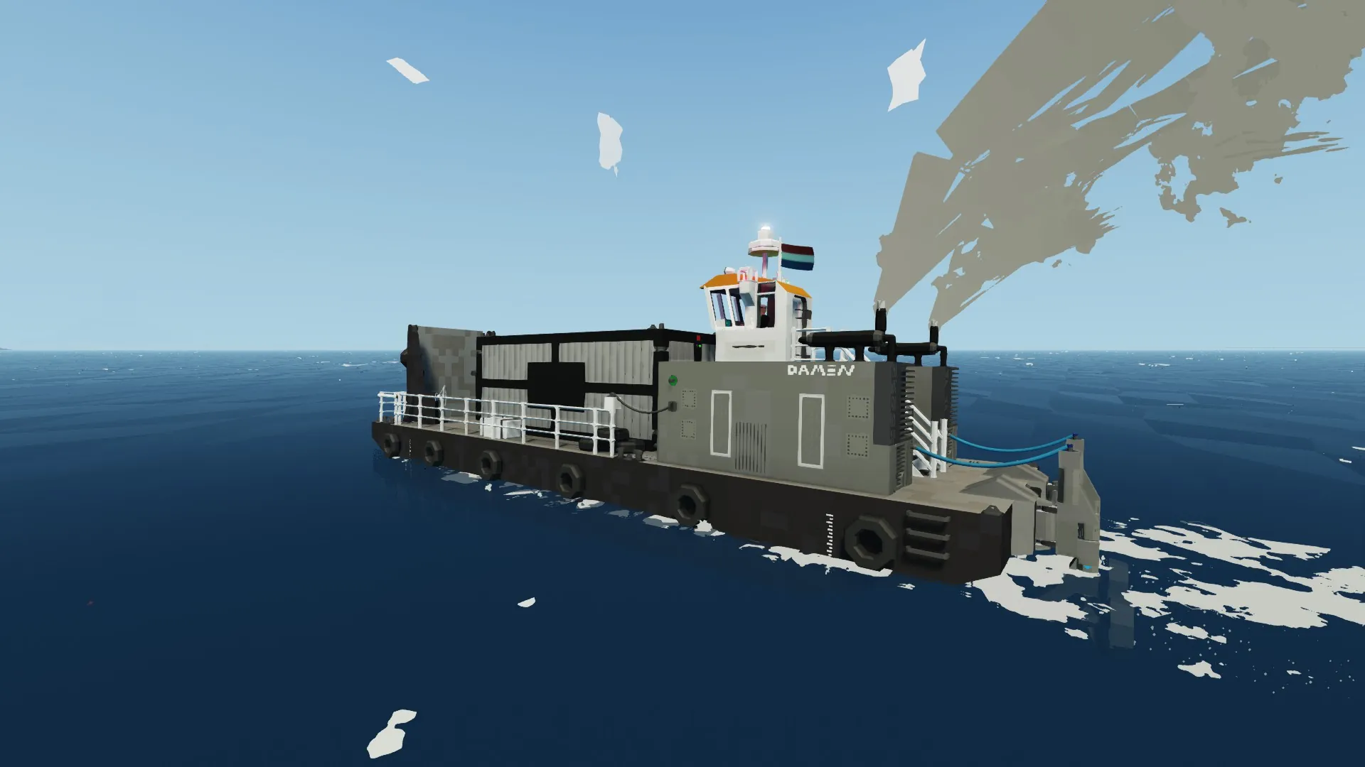 This Damen Modular Multi Cat 1805 is recreated in Stormworks with a focus on modular realism and twin-screw hydraulic propulsion.