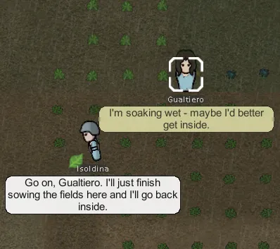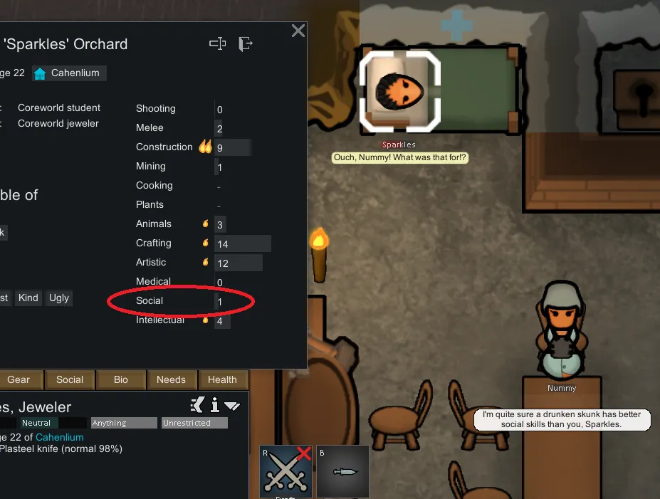 you will be able to find this out right away - as the pawn will comment on it with other pawns. The dialogues are shown using the Interaction Bubbles mod by Jaxe.