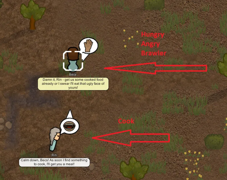 [*] a hungry, angry, brawler pawn might threaten a skilled cook, forcefully asking for cooked food or else