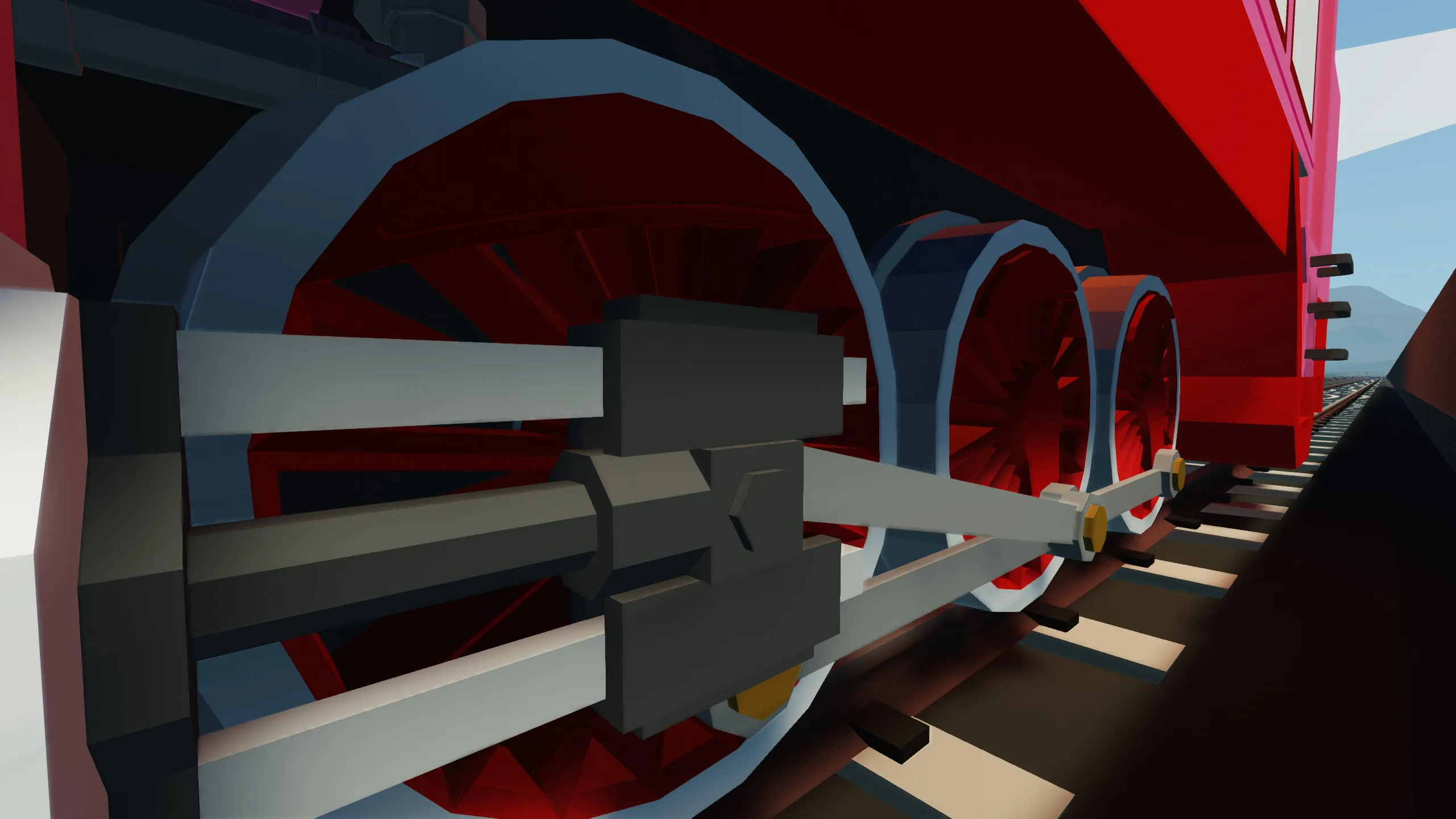 No face for easier access to boiler. Welding torch and fire extinguisher under the train.