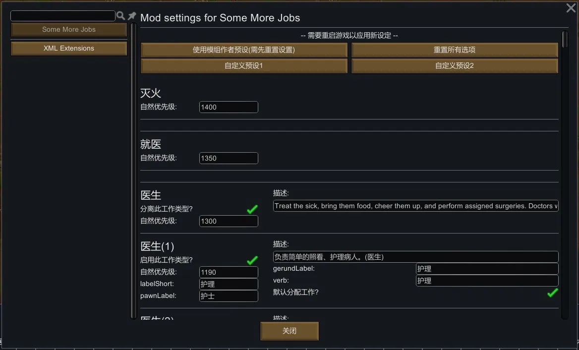 同时因为已经替换了文件,我就顺手加了一键用户编写的预设的功能。如果自己改了的话推荐直接复制英文原mod,然后用修改的Settings.xml覆盖原本的Settings.xml,变为本地mod使用。