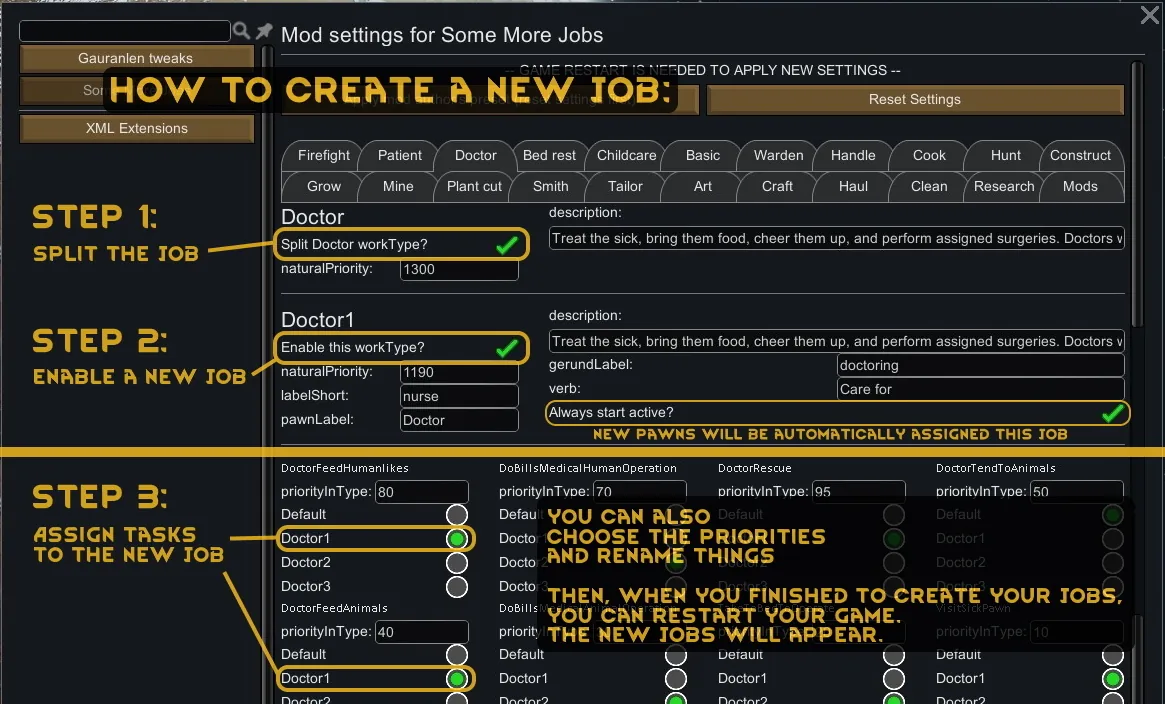 汉化内容包含设定界面(需要配合XML Extension使用),原作者一键预设;小部分dlc内容的设定未完成汉化,暂不包含原mod支持的其他mod(XNDCarpenterTables/Shoo/etc.)。