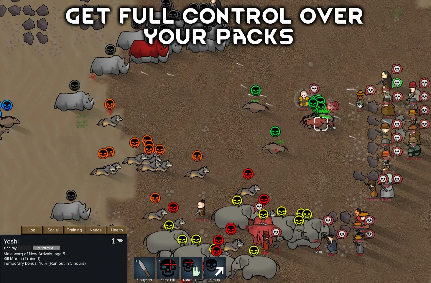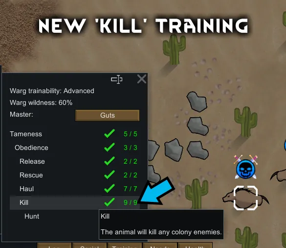 [u]Unlike vanilla release animal training[/u], you do not risk life of colonists, get full controls over your packs movements (and therefore the ability to create attack strategies) and choosing targets to kill plus many other advantages and customizations (attack buildings, ranged attack support for modded animals, bonus attack system, hierarchy system...).