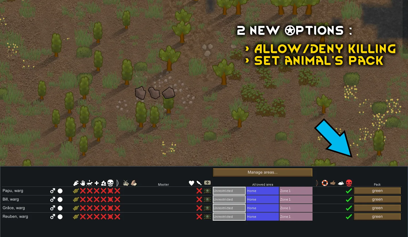 [*] You can target your own animals and colonists with packs (disabled by default)