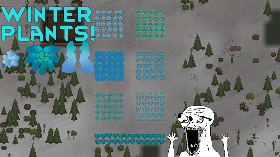 Adds 7 new winter plants to Rimworld, which can survive harsh cold environments.