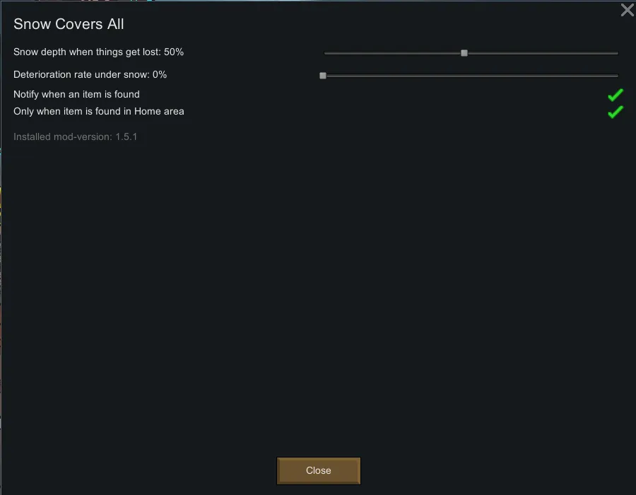 The exact level of snow can be set in the mod-options as well as if the items should continue to deteriorate under the snow.