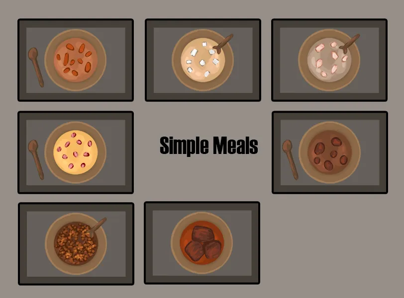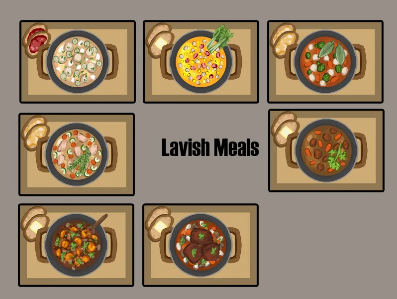 This mod uses alternate textures for meals, with only one recipe! Replaces the base VE Stews with randomized textures, using the variety graphics class from Food Texture Variety Core.