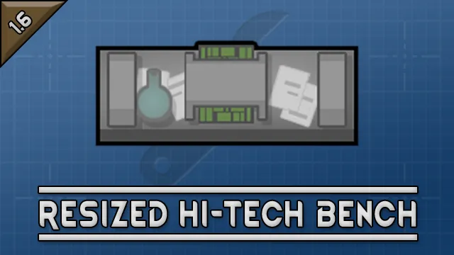 A mod that resizes hi-tech research benches to be smaller. The new size is 3 x 1, with HP reduced from 250 to 180.