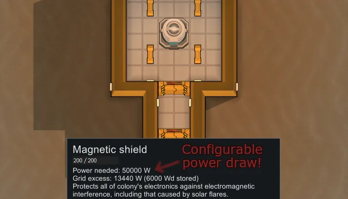 Makes the [url=https://steamcommunity.com/sharedfiles/filedetails/?id=728315620]RT Solar Flare Shield[/url] consume configurable amount of power.