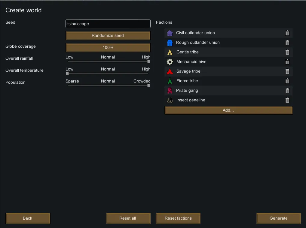 The four of you amerge rom your drop pods expecting to see the earth like planet you where sent to reserch but instead you see a world of ice. extremly hard. look on mod page for wrold setup. 2 years worth of food to start with