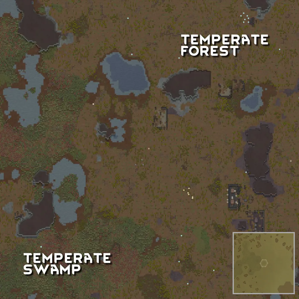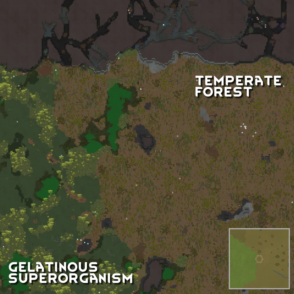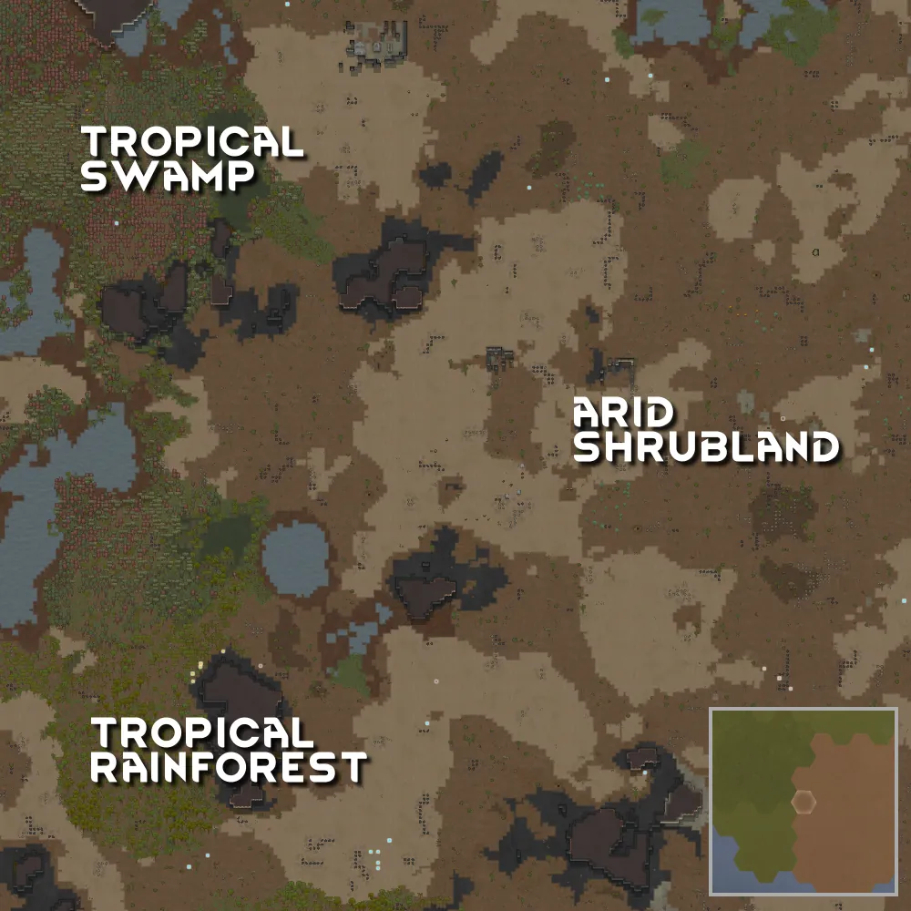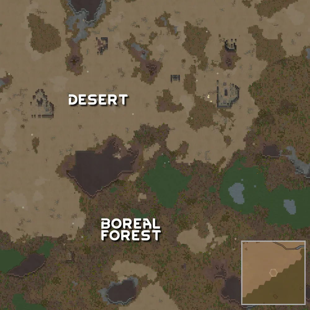 For example, if you settle on a Temperate Forest world tile that has some Desert adjacent to it, then one side of your map will have some Desert terrain, plants and animals.