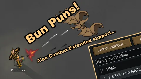 Adds the Bun race to Rimworld. Buns come in both tribal and advanced flavors. Buns are smaller and weaker than humans, but have powerful legs that make them blazingly fast and allow for dangerous kicks.