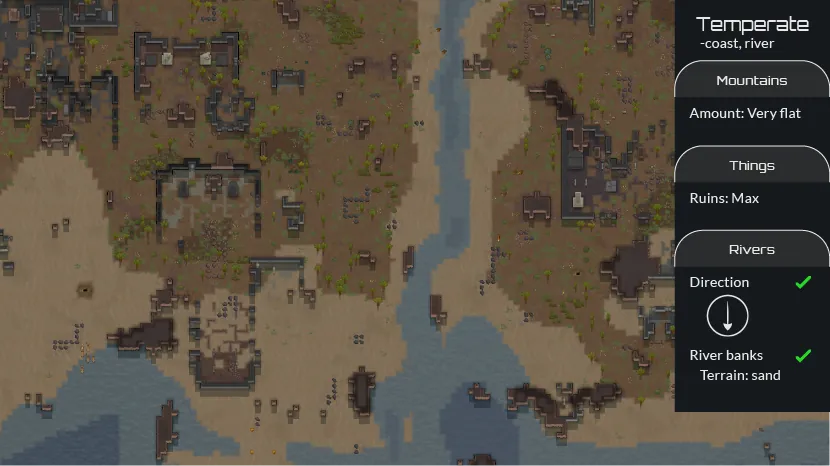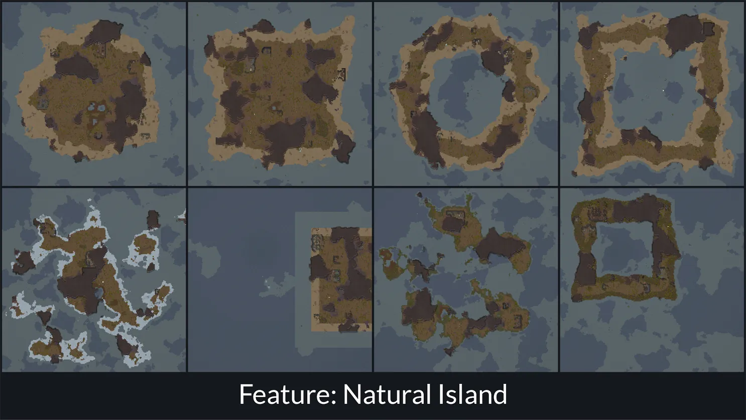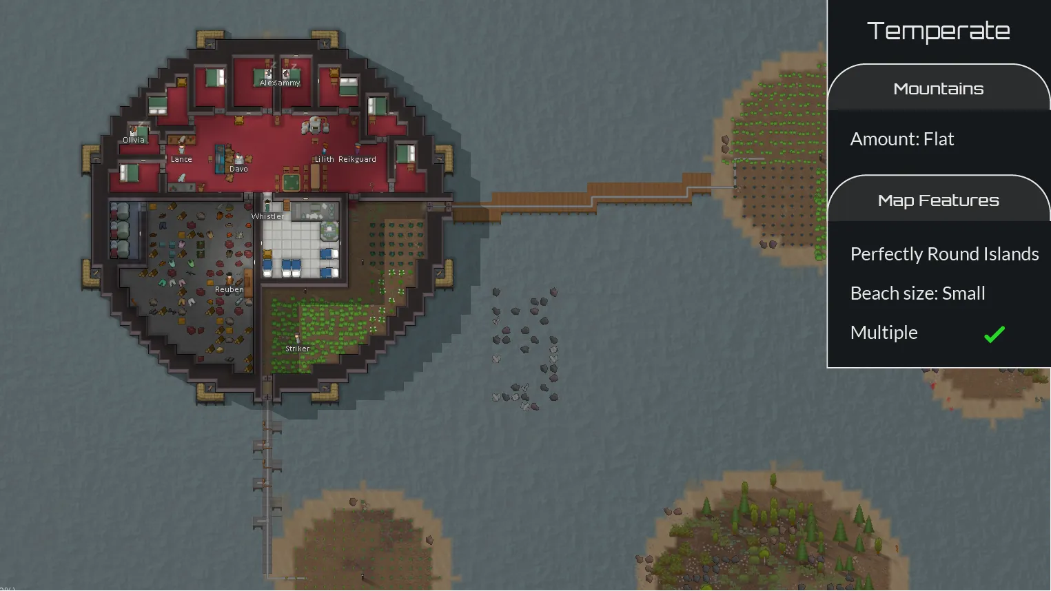 [*] Perfectly round islands: your map will generate as one or more perfectly round islands, surrounded by shallow water. Raids and trade caravans will still path in normally from the sides.