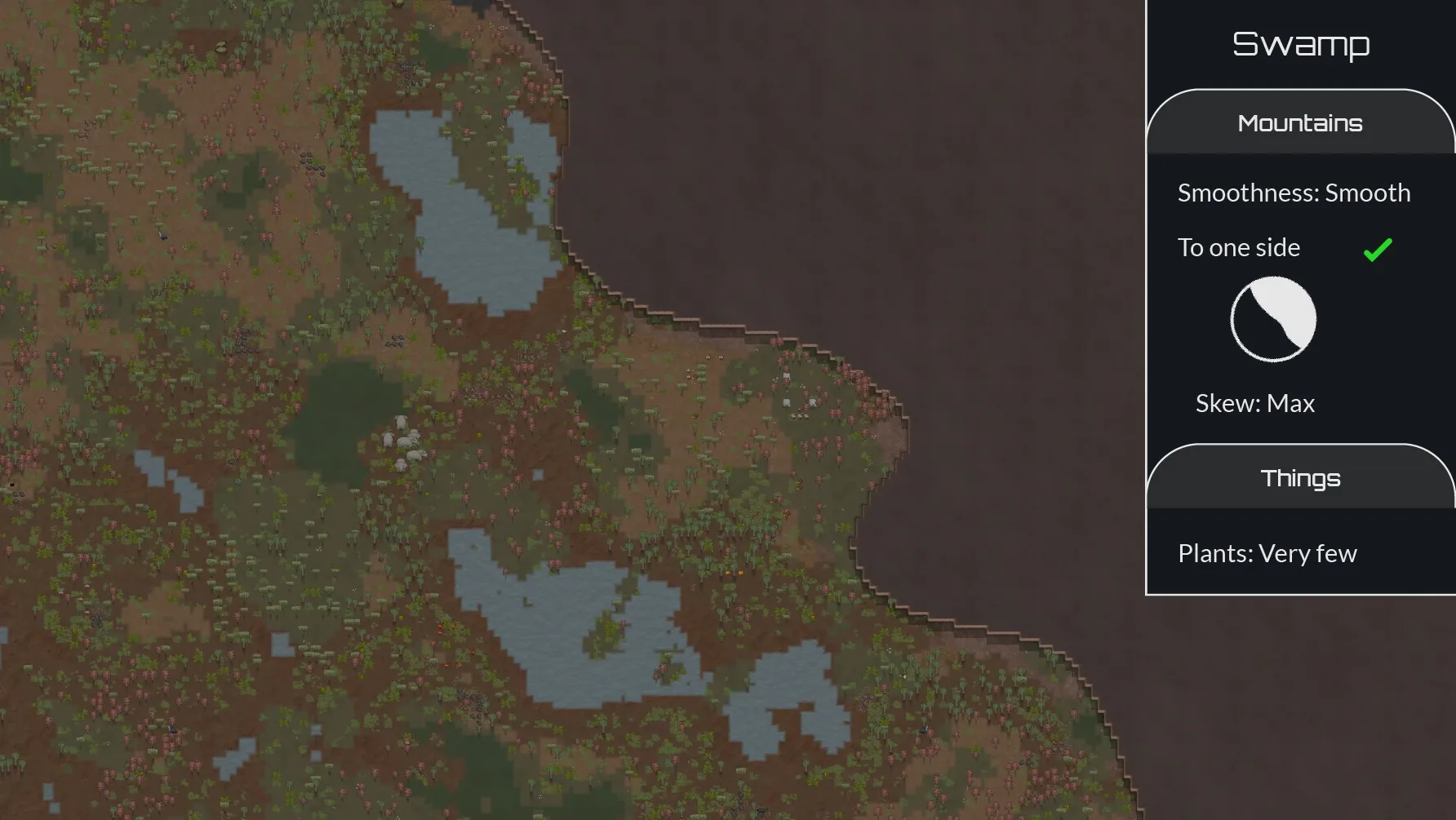 [*] [b]Fishing village[/b]- Large hills to dig into, but little solid ground otherwise. Swamps may have NO solid ground outside of the mountains.