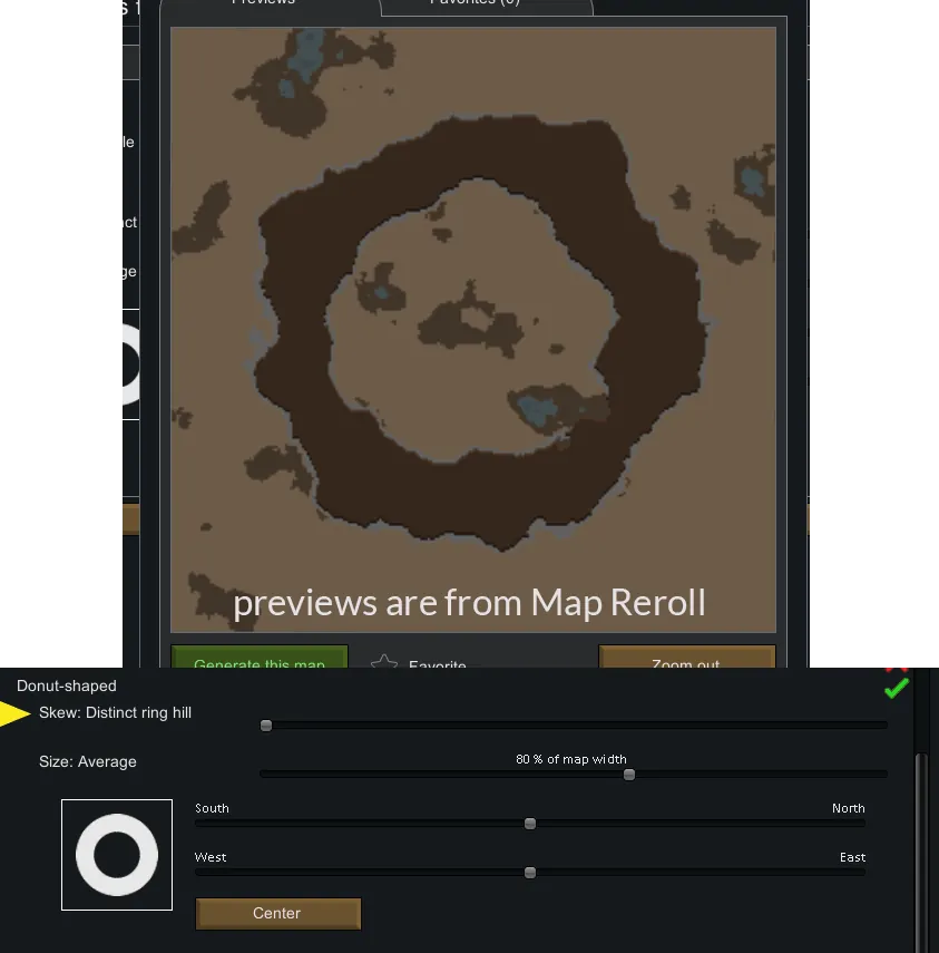 Big changes can make the map unrecognizeable. Put the mountains where you want, turn the river sideways, and design your ideal map on almost any tile! You can use a preset, start with a preset and make changes, or design your map from scratch.