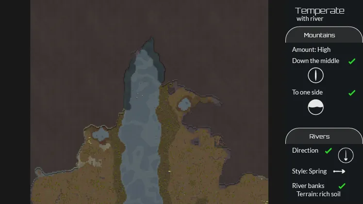 [*] [b]Fertile valley[/b]- A secluded valley surrounded by mountains. Higher fertility, more plants, and fewer ruins. If your tile has a river, the river will have fertile soil on the banks.