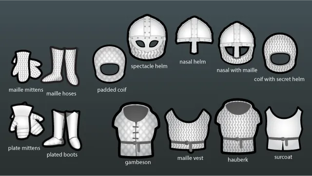 * [b]maille vest[/b] - worn over gambeson gives comparable protection to the hauberk at a cheaper price.