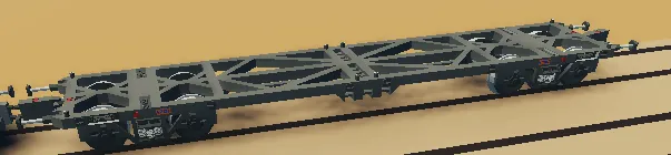 An ISO Flat railcar for the transport of ISO containers, can handle up to 2-4 containers or less.