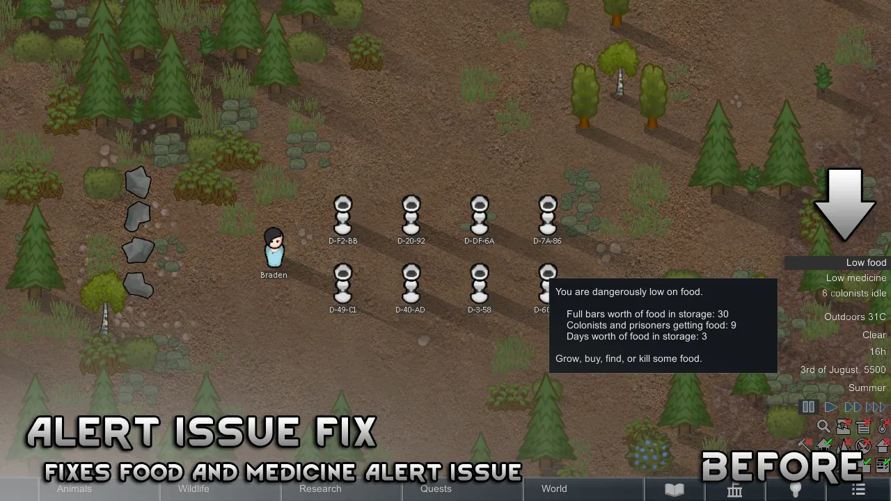 [*] [b]Low food alert[/b] - Fixes the food warning counting droids and drones.