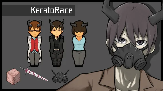 ケラトは闇のアルコテックの因子を埋め込まれ、強化された人間種です。引き締まった体格と遺伝的に調整された戦闘センスによって近接戦では大きな戦闘力を発揮しますが、体内に宿る『存在』の声に悩まされているため、少し精神的に不安定です。