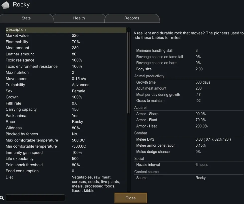 Ever thought your colony could use some heavy-duty, mobile boulders? Meet Rocky, a living, breathing (kinda?) rock companion that’s ready to add a whole new layer of... solidity to your RimWorld experience!