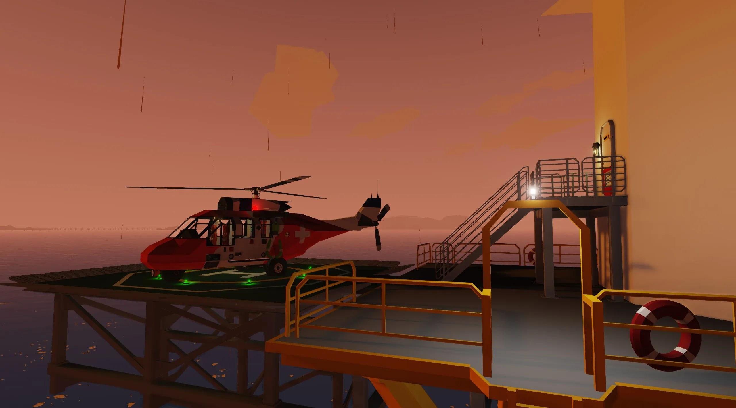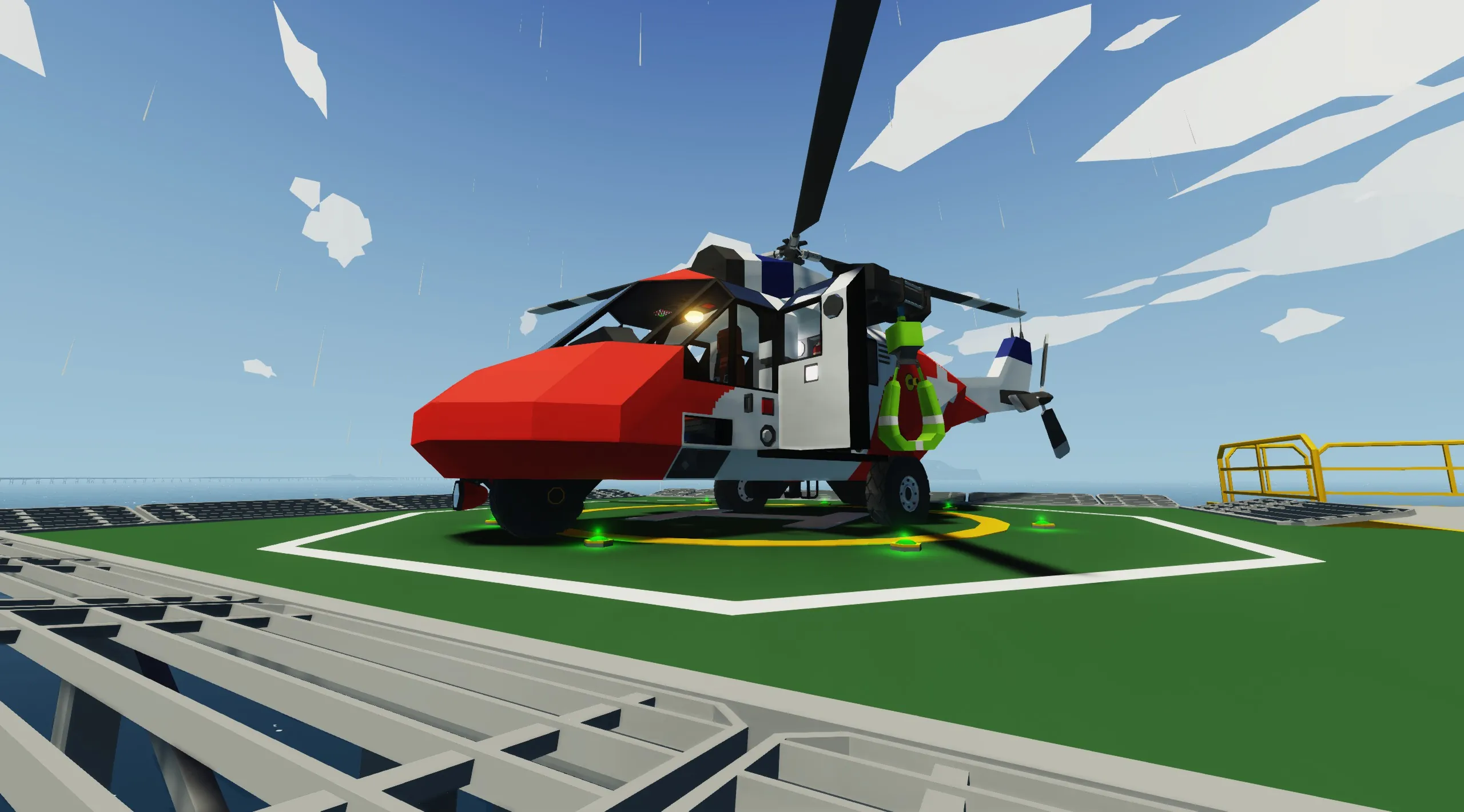 There is a rescue harness mounted on the side of the helicopter for lifting casualties into the helicopter. This can be controlled from the harness itself using the hotkeys, but also from the helicopter, and from an include remote controller which can raise and lower it when you are not near the helicopter.