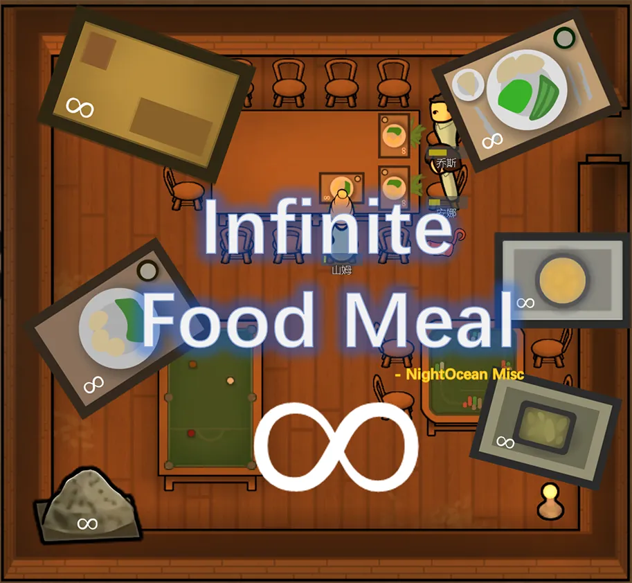 Added some infinite foods that are simple ingredients but require a high skill level (18) to make. When an infinite food is eaten, a new infinite food will appear under the eater's feet or in the eater's inventory (depending on the setting).
