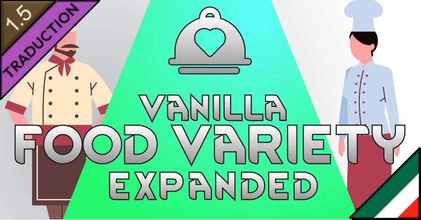 Vainilla Food Variety Expanded introduce una necesidad de "variedad de alimentos", lo que añade una nueva capa de complejidad a la planificación de las comidas. Esta necesidad lleva un registro de la variedad de comidas e ingredientes que consume cada colono. Una dieta variada mejora la puntuación de "variedad de alimentos", lo que recompensa a los colonos con mejoras de humor por probar alimentos nuevos y diferentes. Por el contrario, la falta de variedad en su dieta conduce a penalizaciones en el estado de ánimo, lo que refleja la monotonía de comer las mismas comidas repetidamente. ¡Todo esto es configurable!