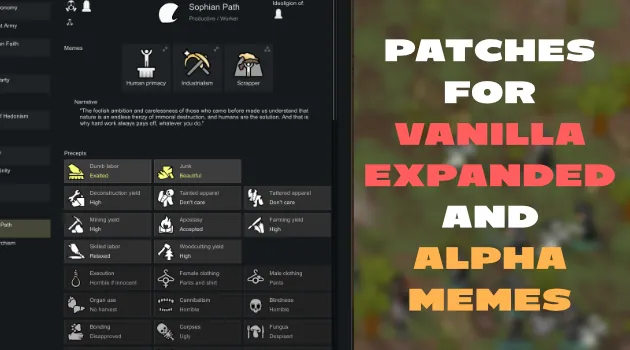 This mod is compatible with CE and VFE – Empire. The new factions will not make use of the new royalty mechanics, such as the Great Hierarchy.