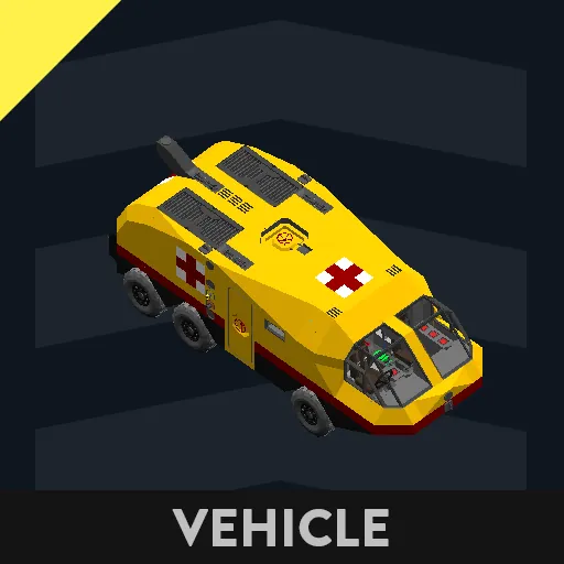Because I did like the design, I changed the purpose to be more practical in gameplay; An amphibious vehicle that can fullfill the role of an emergency vehicle both on the road and in the water. It isn't fast, but that's because it's designed for Classic career, as a starter vehicle. As such it is cheap and practical. It isn't efficient, and if you want to use the amphibious water mode you'll need doors or put blocks in their place (at least the side-doors), but it does come fully equipped. And to be frank, doors only take 6 research points, so it should be available quite easily.
