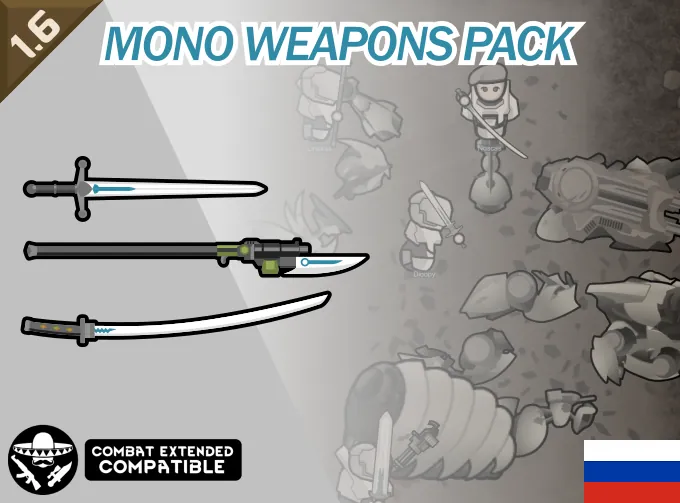 Добавляет 10 (9 + 1 ретекстур с Royal Arsenal из-за избыточности) моно-оружий и стойки для их использования. Если нашли не переведенный контент напишите в комментарии.