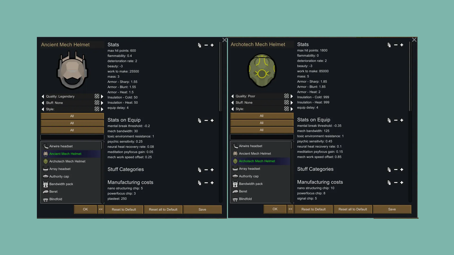 Adds 4 sets of OP mechanitor armor for all your mechanitor's machinationes.