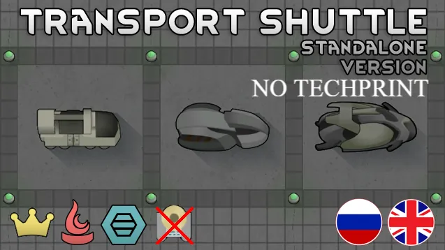This patch allows you to research the transport shuttle without a special blueprint. Этот патч позволяет исследовать транспортный шаттл без специального чертежа.