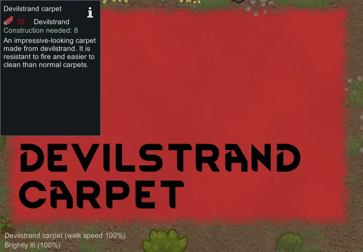 Lets you make a carpet out of devilstrand. It's suitable for royalty, is fire resistant and a bit easier to clean than normal carpets. That's it. Enjoy. Or don't. I don't care.