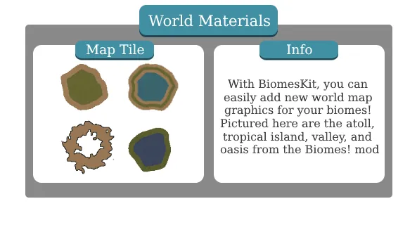 * Custom world map tile graphics for your biome!
