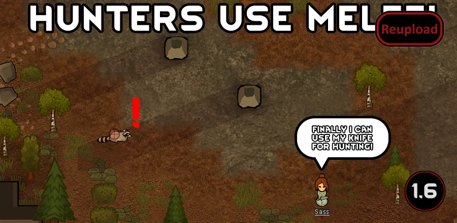 [b]Now featuring!:[/b] Support for non-weapon hunting (using fists) and for [url=https://steamcommunity.com/sharedfiles/filedetails/?id=927155256]Simple Sidearms[/url], a mod I highly recommend :) Both are optional and can be enabled in the new mod settings menu.