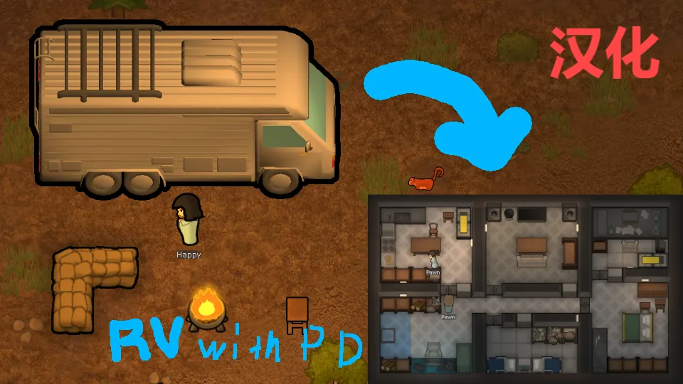 RV with built-in PD 和 SimplePortal 的汉化。使用提取翻译mod。依赖原mod,支持原作者。