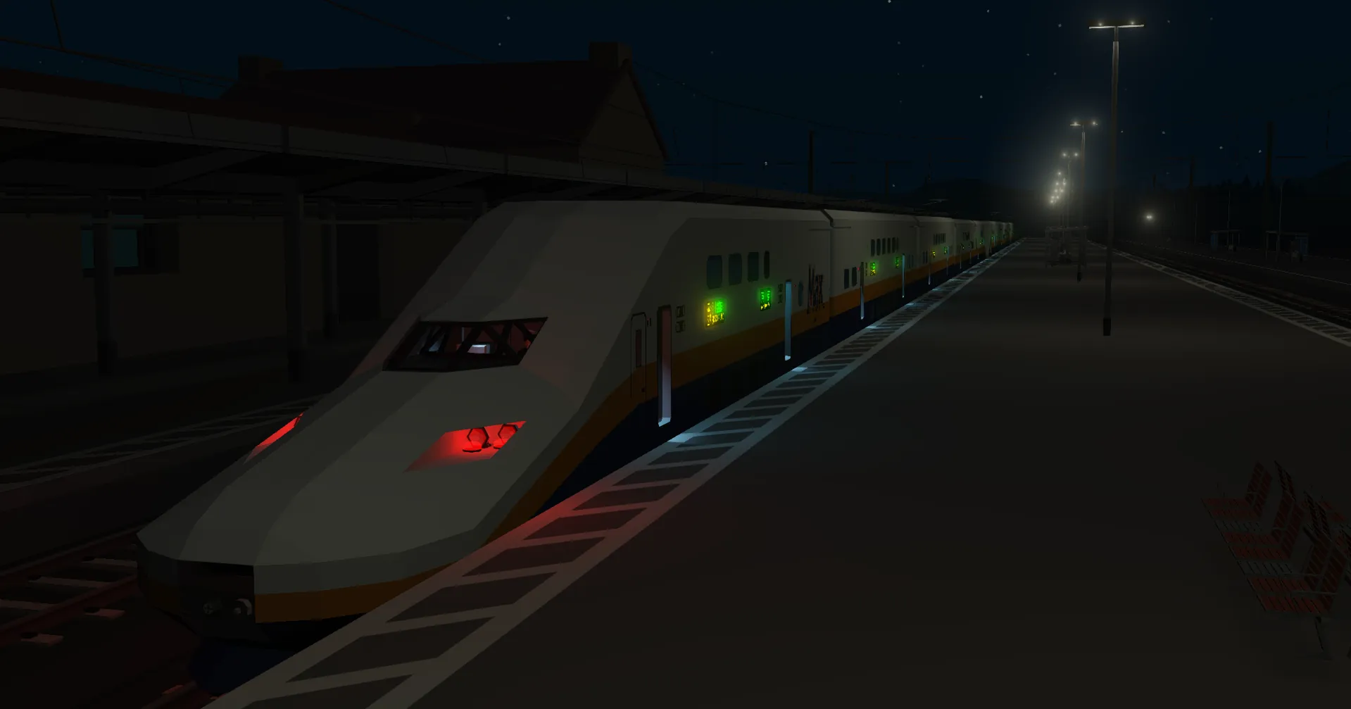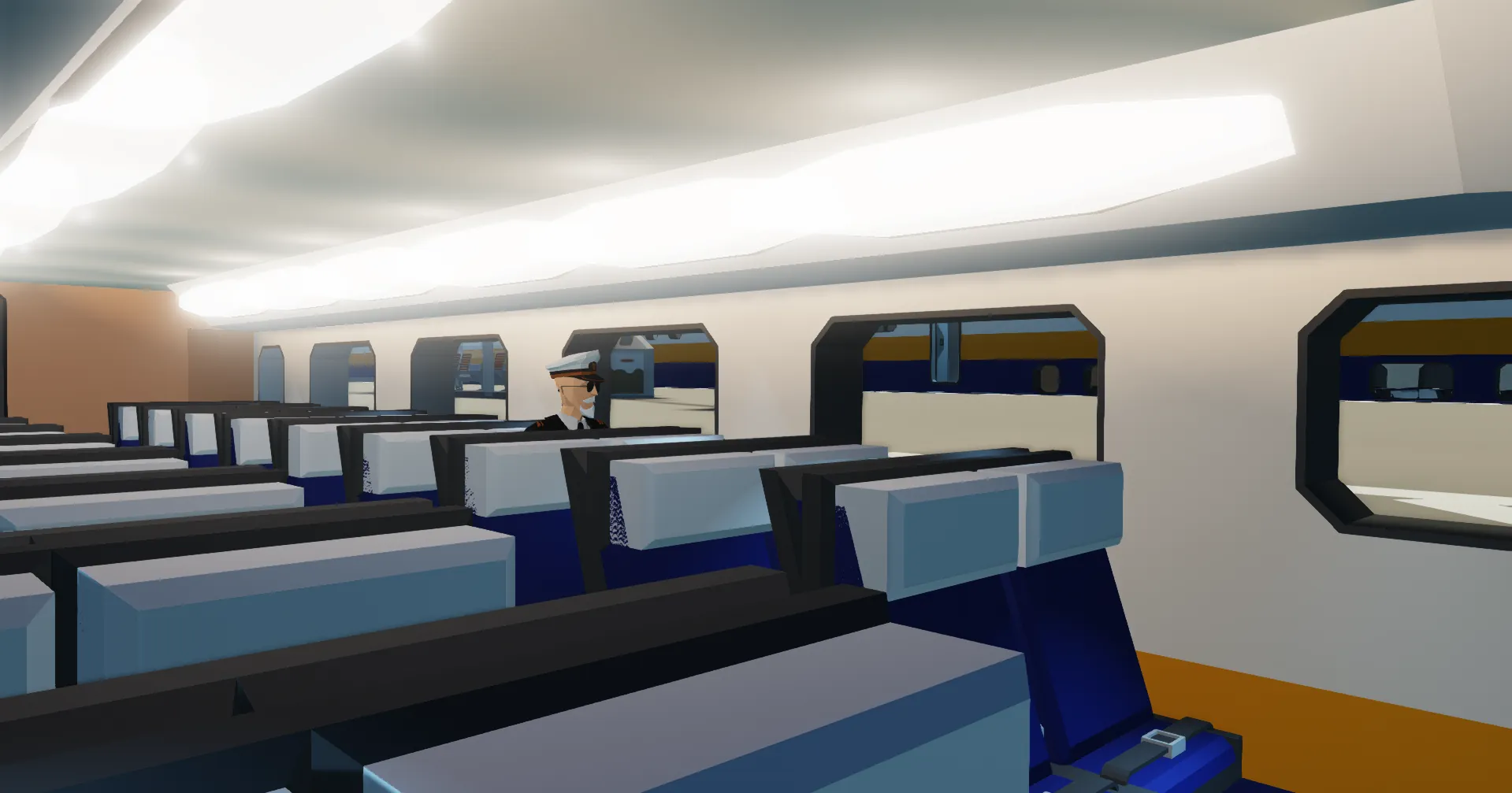 Interior doors, lighting, and heaters are automated to minimise lag and UI clutter. A full 16-car consist still seats an impressive 960 passengers in-game.